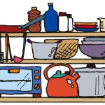 1.「料理の手順と道具の配置」流し台まわりには、水を使う作業に使うもの。加熱機器まわりには、加熱、味付けをするもの。調理台には、切ったり、こねたり、味付けをするもの。配膳台には、盛り付けに使うもの、とそれぞれの作業内容に合ったものを配置します。頻繁に使うものは、棚にしまわず手の届きやすい場所に配置することも大切です。